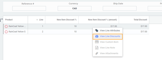 You can also see all line discounts by right-clicking on the item line and clicking view line discounts.