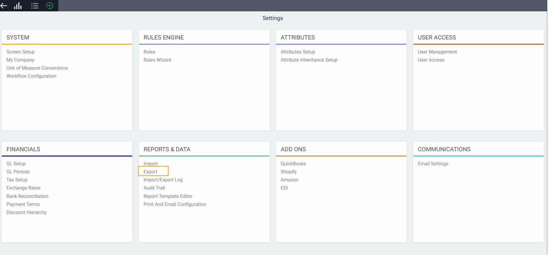 This step is only necessary if you selected to have journal entries generated for inventory. To verify this, access the settings page, then click on my company.