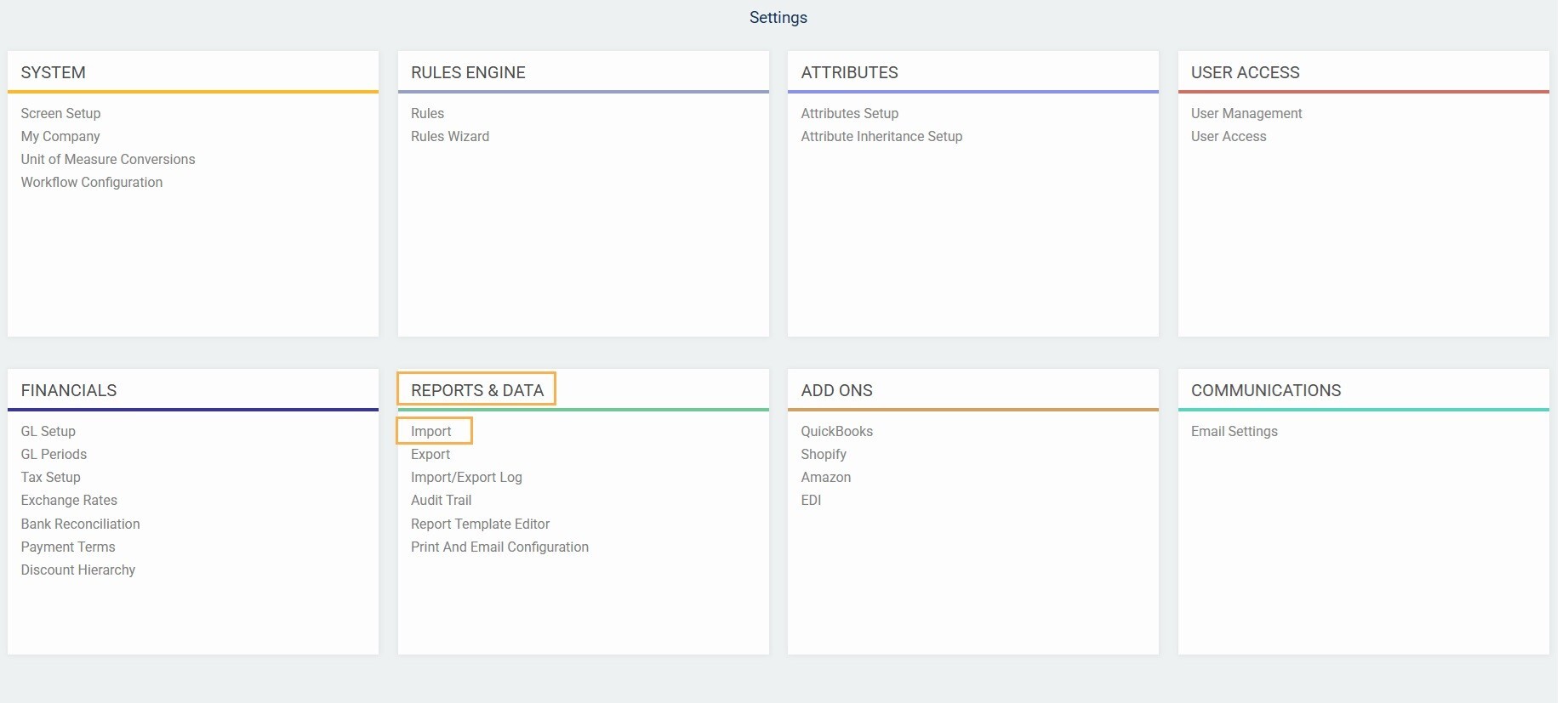 The import modal with pop up and you will be prompted to choose what you would like to import. Here, we will choose inventory.