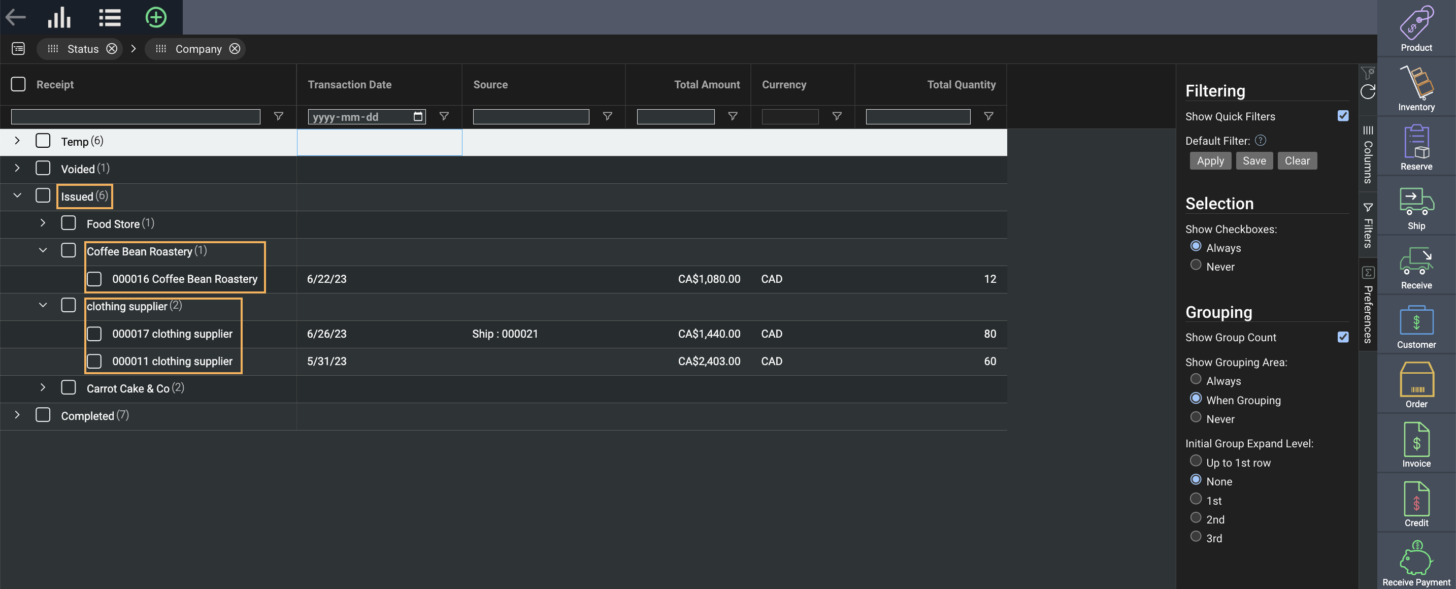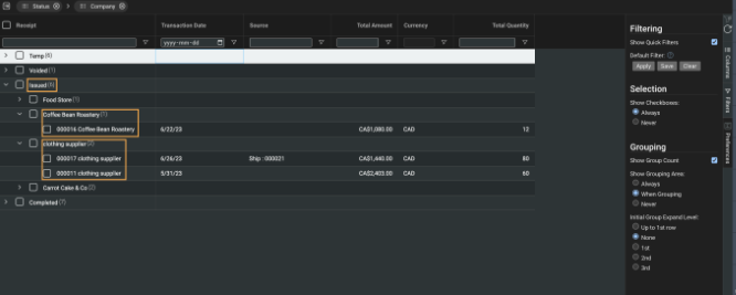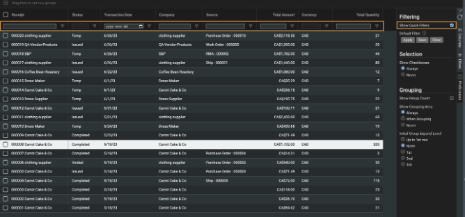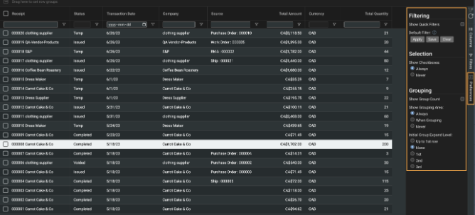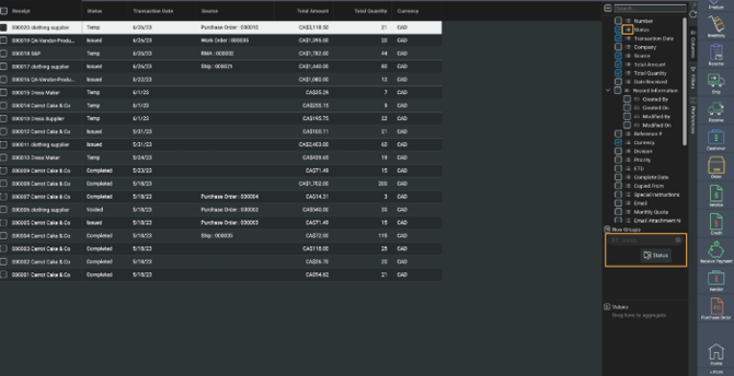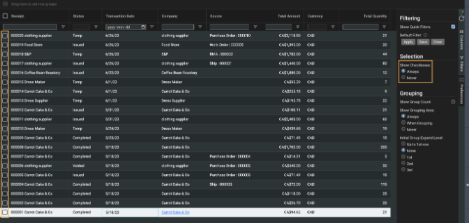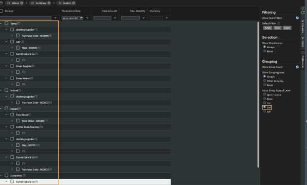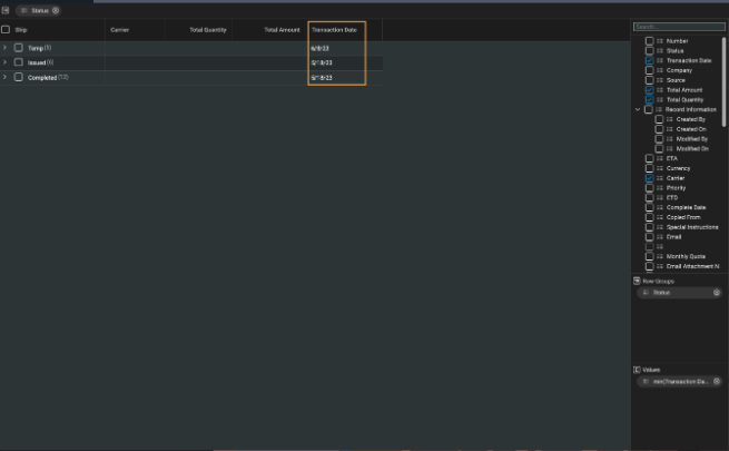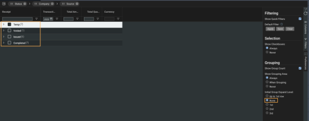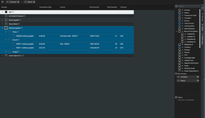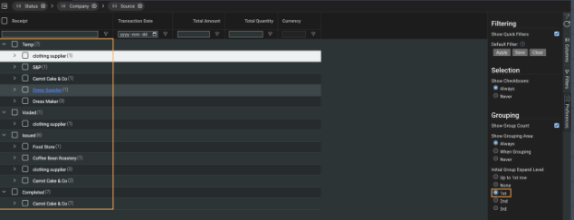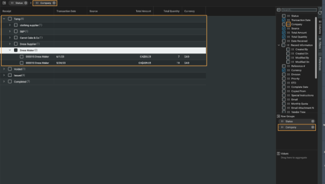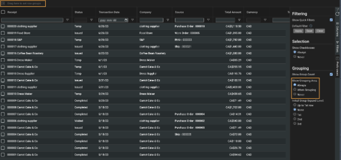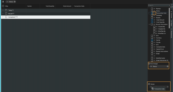 Show Group Count. This checkbox will allow you to quickly view the number of records in that specific row group. For example, if you are grouping by status and company, the count can show you how many rows are issued, and how many of them belong to each company.