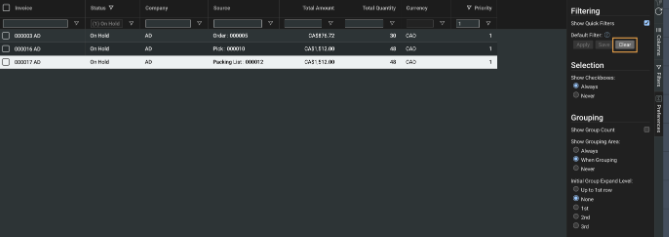 The changes to your selections are not immediate. They only take effect after your log out and back in to ParagonERP. Therefore if you are switching between modules for your workflow without logging out, your current list view will not change.