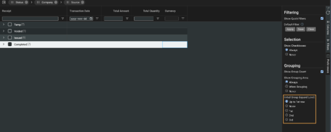 This section allows you to select when you want the grouping area above the list view headers to be visible. Selecting the when grouping option will make the row group header only visible when using the grouping function.