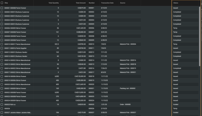 All of the screens shown above are using the dark mode option for viewing the list view screens. There is also a light mode that can be set up in the user settings modal. Ask your system administrator to change this setting to light if that is your preference.