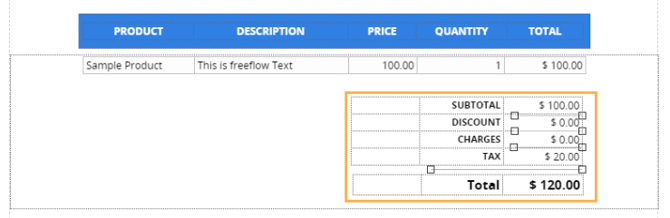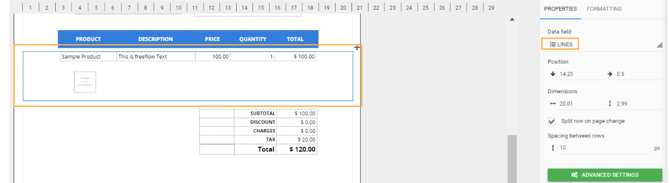 - Move the subtotal, discount, charges, tax and total table outside the lines container