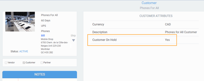 It may happen that you want to suspend a specific customer account. In this case, the customer on hold attribute can be activated until the account has been settled. This will prevent any sales transactions from being issued, while the customer remains on hold.