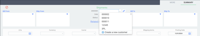 Note that the shipment will not have a transaction number until it is saved. Once a transaction number is assigned, it will replace #####.