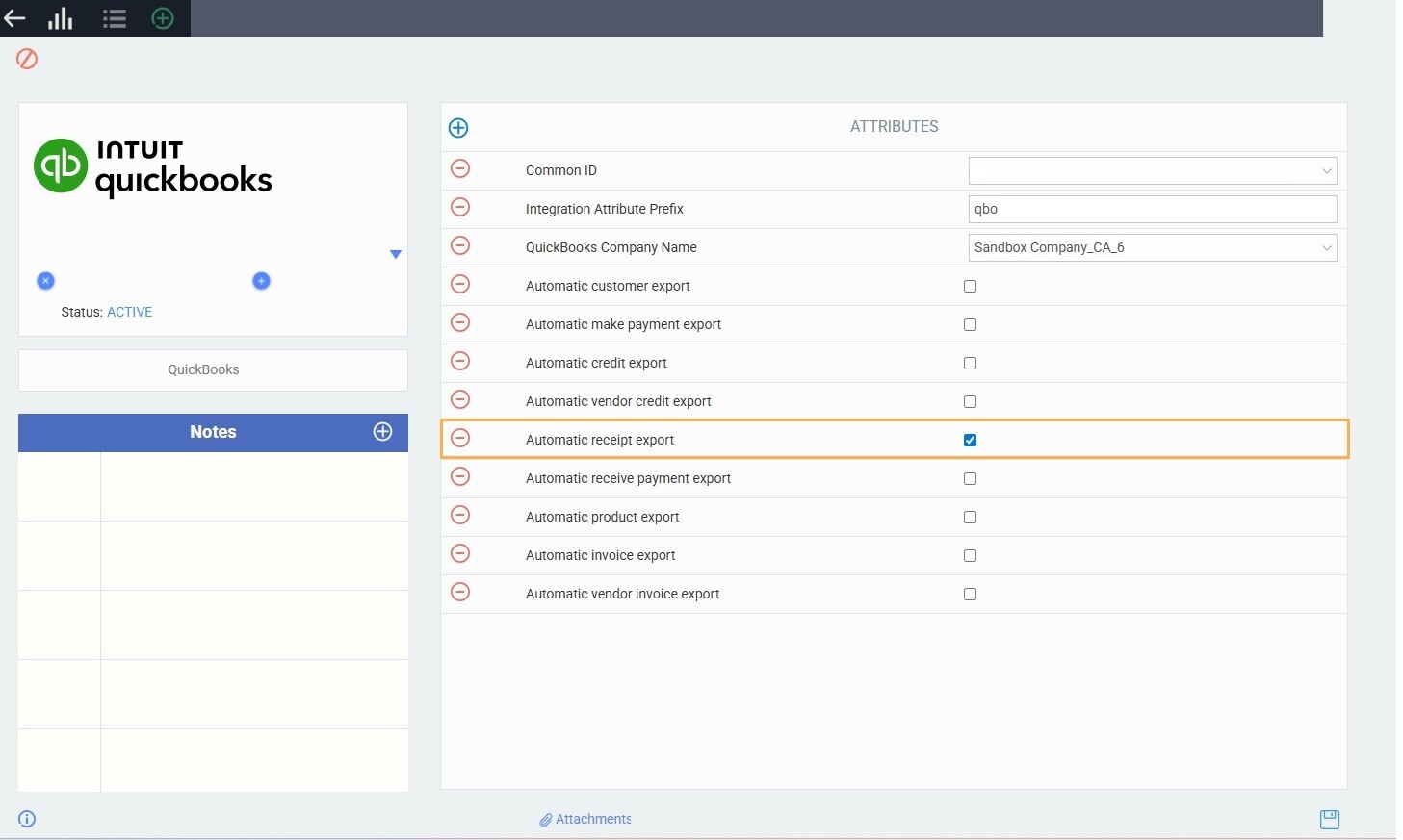 From Paragon, navigate to your QuickBooks setup page and enable automatic receipt export.