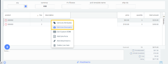 In edit mode, select edit line discounts and add your attributes. When you have added the necessary discounts, click the accept button.