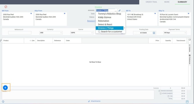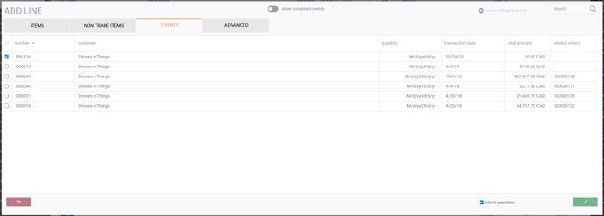 Click the blue add new line button to add the event, just as if you're adding items to your invoice.