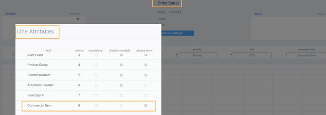 Now that your item has been correctly set up, use attribute inheritance to instruct Paragon to pull and transfer the translated attribute (commercial item) onto your orders when that specific product is added to it.