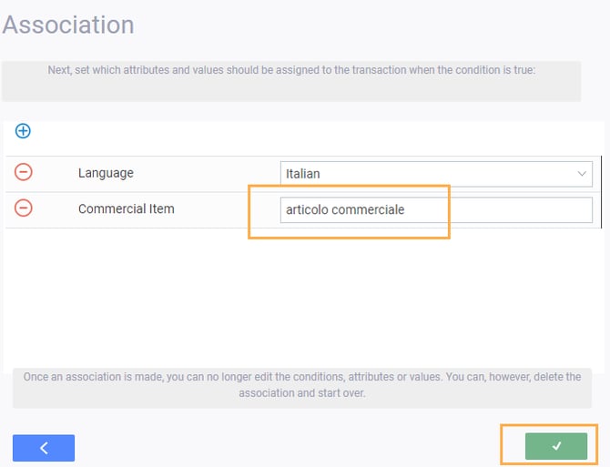 Now that you have configured your attribute in items and transactions, use associations to link your attribute to a language, which in this example is commercial item.