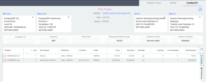 - Pick: non stock item is shown, but with quantity to pick = 0