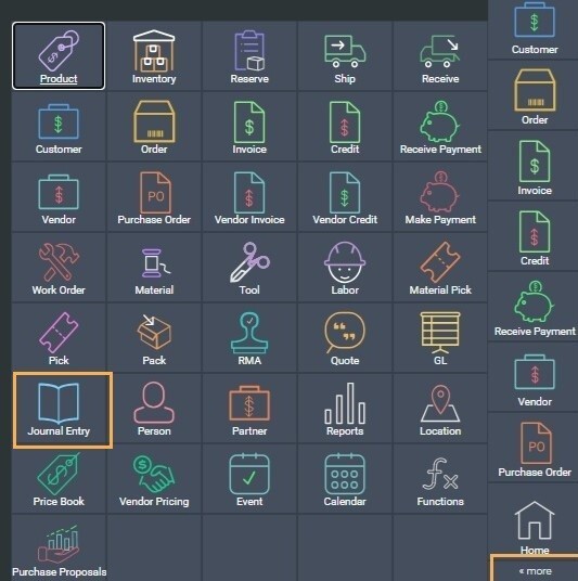 To take a look at the automatically generated journal entry, navigate to the journal entry module from the more button in the bottom right hand corner.