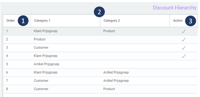 - Order determines the sequence of a price search. In the setup below, first a discount for the combination of Customer price group and Product is searched, second a discount for product, third a discount for customer and finally if there is a discount configured for the Customer price group the customer belongs to.