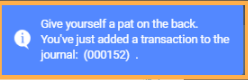 Once issued, a notification will pop up letting you know that you've added a posting to journal entries.