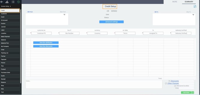 - Enable custombom - This option can be seen on the credit screen, but is inaccessible since it does not pertain to credit notes. Only the transactions that can use the custombom will allow access.