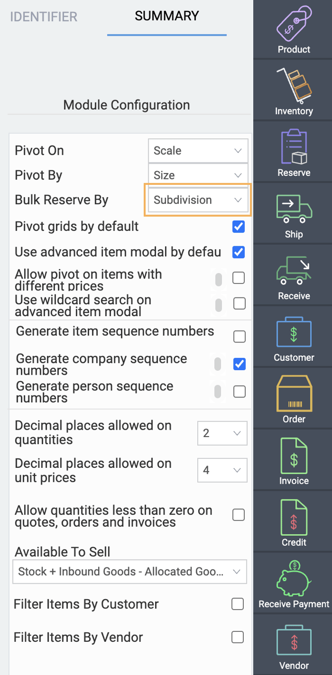 - Fully reserve - Selecting this will fill all of the RES columns with the full outstanding quantity if there is enough stock available to sell for that entire order line. Use this option when you want to reserve all units for the selected orders.