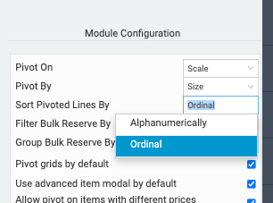 pivots to group and view items within a shared variety, allowing for quicker and more intuitive order entry. This is commonly used for apparel product catalogs where different sizes of the same style and/or color are entered together. Previously, when pivoted items were added to orders, they would be sorted alphanumerically. However, sometimes the items were purposely entered in a specific order and should be displayed as such.